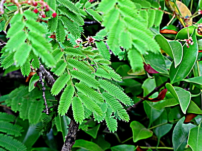 | Description | : | climbing, most well-known for the natural shampoo derived from its fruit. Thorny branches have brown smooth stripes - thorns are short, broad-based, flattened. Leaves with caducous stipules not thorn-like. Leaf stalks are 1-1.5 cm long with a prominent gland about the middle. Leaves are double-pinnate, with 5-7 pairs of pinnae, the primary rachis being thorny, velvety. Each pinnae has 12-18 pairs of leaflets, which are oblong-lanceshaped, 3-10 mm long, pointed, obliquely rounded at base. Inflorescences is a cluster of 2 or 3 stalked rounded flower-heads in axils of upper reduced leaves, appearing paniculate. Stalk carrying the cluster is 1-2.5 cm long, velvety. Flower-heads about 1 cm in diameter when mature. Flowers are pink, without or with reduced subtending bracts. Pods are thick, somewhat flattened, stalked, 8 cm long, 1.5-1.8 cm wide. |
