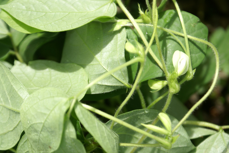 | Description | : | Perennial or annual climbing herb, stem pubescent, hairs spreading. Leaf trifoliolate, petiole 0.8-7.0 cm long, leaflets 1-3.5 cm long, 0.7-7.8 cm broad, ovate rhomboid, obovate or elliptic, (the lateral leaflets oblique), obtuse or subacute, glabrescent to pubescent, petiolule 1-2 mm long; stipules 4-8 mm long. Inflorescence axillary, 1-5-flowered fascicle; peduncle 0.1-5 cm; bracts c. 2 mm long; pedicel 1-7 mm; bracteoles c. 3 mm long. Calyx pubescent, tube 2 mm long, teeth 3-8 mm long, upper 2 united together. Vexillum 0.6-1.2 cm long, cream, yellow or greenish-yellow, often with a purple spot inside. Fruit 3-5.5 cm long, 6-8 mm broad, pubescent or glabrous, acuminate. |