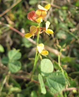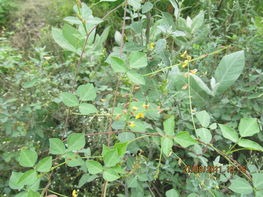 | Description | : | Perennial, climbing or prostrate; stem glabrous to pubescent. Leaf trifoliolate, petiole 6-20 mm long; leaflets 1.0-2.5 cm long and broad, rhomboid-ovate or rhomboid-obovate, mostly acute apiculate, pubescent above, pubescent on the veins and glandular punctate below, glands orange to black; stipules up to 3.5 mm long. Inflorescence a lax axillary raceme. Pedicel very short. Calyx 3.5-4.5 mm long, pubescent, teeth longer than the tube. Corolla yellow. Vexillum 5-6 mm long, pubescent externally. Fruit 1.2-2 cm long, 6-6.5 mm broad, glabrous, 2-seeded. Fl.Per.: January-March. |