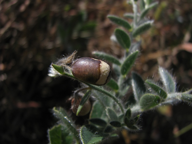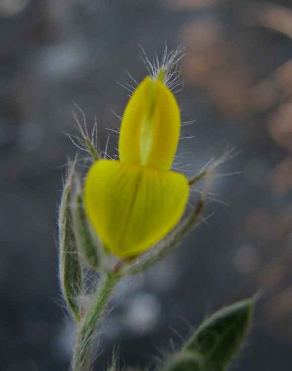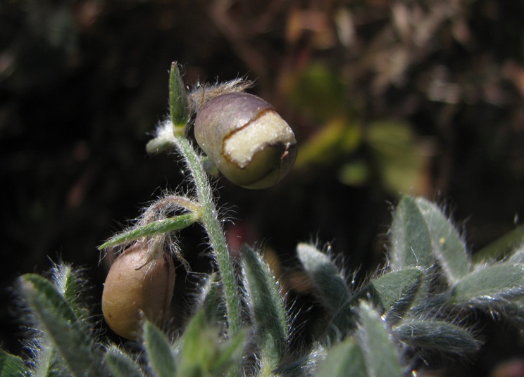 | Description | : | Diffuse, branched annual herbs; stems terete, velutinous, hairs silky brown, 2-4 mm long, spreading. Leaves simple, alternate, 1.1-3.3 x0.3-0.7 cm, linear-lanceolate or oblong-lanceolate, acute or cuneate at base, obtuse and apiculate at apex, sericeo-villous on both surfaces, more on the lower, margins ciliate, main lateral veins 2-3 pairs, obscure; petioles 1-2 mm long, villous; stipules absent. Racemes terminal; peduncles 1.0-2.5cm long, pubescent. Flowers 1-5, crowded or subcapitate, 9-10 x 4-5 mm; pedicels 2-3 mm long, pubescent; bracts lanceolate-acuminate, 6-8 x 1.5-2.5 mm, pilose, stalked; bracteoles 2, beneath the calyx, linear-lanceolate, 4.5-5.0 x ca 1 mm, acuminate, densely pilose. Calyx deeply 5-lobed, tube ca 2 mm long, 2 lipped, lobes 8-9 x 0.7- 2.0 mm, densely pilose, hairs up to 1 mm long, 2 lipped, lobes 8-9 x 0.7-2.0 mm, densely pilose, hairs up to 1 mm long, margins ciliate, upper lip 2- lobed, lobes lanceolate, acuminate at apex, lower lip 3-lobed, lobes linear-lanceolate, acuminate at apex. Corolla yellow, equal to calyx or slightly exserted; vexillum obovate-oblong, elliptic-oblong, ca 8 x 4-5 mm, pilose on the back at apex, hairs up to 2 mm long, claw ca 1 mm long, straight; wing petals oblong or obovate-oblong, ca 6 x 1.2-2.0 mm, claw ca 1 mm long; keel petals 7-9 x ca 3 mm, beak 3-5 mm long, twisted. Staminal sheath 2-3 mm long; free filaments 2.0-2.5 mm long; longer anthers linear or linear-oblong, 1.0-1.7 mm long; shorter anthers ovoid-oblong, 0.3-0.4 mm long. Ovary sessile, obovate-oblong, 3-5 x 0.7-2.0 mm, glabrous; style 6-8 mm long; ovules 21. Pods sessile, ovoid-oblong, 11-12 x ca 6 mm, beaked, glabrous, brown; seeds 15-20, reniform, ca 1.5 x 1.5 mm, brown