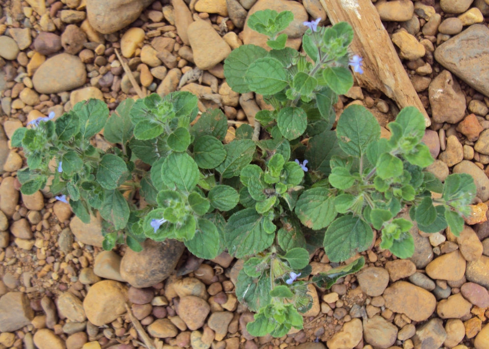 | Description | : | Shrubs, to 1.5 m high; stem obtusely 4-angular, thinly hairy. Leaves ovate, acute, hispid below, glabrate above; petiole to 5 cm long. Flowers in clusters of 1-12; calyx tube 8 mm long, tubular, 10-ribbed, glandular hairy, teeth spinulose, 4 mm long; corolla 5 mm long, lobes short, glabrous inside, blue. Nutlets 4 x 2.5 mm, compressed, with a ridge on dorsal surface, pubescent, deep brown, mucilaginous when wet. |