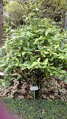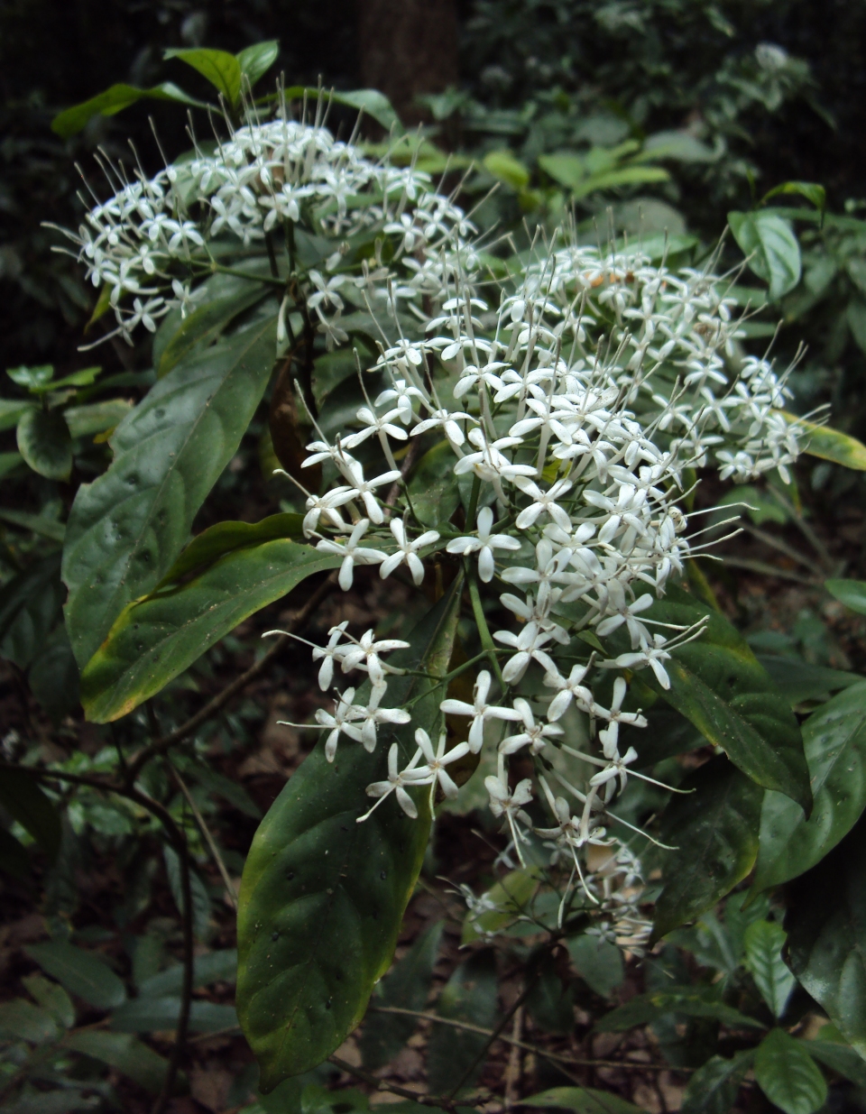 | Description | : | Large shrub or small trees up to 4 m tall. Bark grey, smooth and irreuarly scaly when mature; blaze greenish cream. Young branchlets angular, terete when mature, glabrous. Leaves simple, opposite, decussate; stipules broadly lanceolate, intrapetiolar, sheathing, caducous and leaving scar; petioles 0.6-1.5 cm long, planoconvex in cross section, glabrous; lamina 8.5-16.5 × 2.6-5 cm, variable in shape, elliptic or obovate or oblanceoalte, apex caudate-acumiante, base attenuate, margin entire, prominently glandular between secondary nerves, glabrous beneath; midrib raised above; secondary nerves 6-12 pairs; tertiary nerves broadly reticulate. Inflorescence corymbose cymes, terminal; flowers white; pedicel ca. 0.7 cm long. Berry, with 2 pyrenes; seeds one per pyrene. |