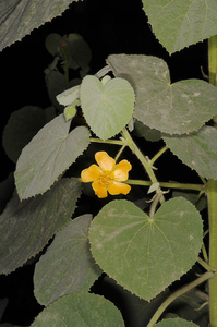 | Description | : | Perennial herb or undershrub, 0.5-2 m tall. Stem, petiole and pedicel clammy pubescent and usually long, dense simple, spreading hairy. Leaves with 3-15 cm long petiole; stipules 5-10 mm long, 1.5-2 mm broad, falcate, lanceolate, eventually reflexed; blade 4-18 cm long and broad, densely stellate, glutinous hairy on both sides mixed with simple hairs, more so on the nerves beneath, usually broadly ovate or ovate, cordate at base, acute to acuminate at apex, crenulate-dentate or serrate, yellowish, yellowish green to green. Flowers axillary, solitary; pedicel 1.5-3 cm and in fruit up to 4 cm long, articulate above the middle. Calyx 6-9 mm long, in fruit up to 12 mm, usually fused to the middle; lobes ovate, acuminate-cuspidate, glutinous, simple and stellate pubescent without, sericeous within. Corolla 3-3.5 cm across, orange-yellow yellow; petals ± 1.5 cm long and 1 cm broad, densely simple hairy, occasionally stellate on the covering margin, more towards apex, broadly obovate, claw ciliate. Staminal coloumn 5-8 mm long, stellate pubescent at the base. it 10-13 mm long, 1.5-2 cm across, truncate, stellate pubescent; mericarps 27 (-30), acute at the back, oblong 10-12 mm long, 6-8 mm broad. Seed 2-3 per mericarp, reniform, 2-2.5 mm across, with minute shining, stellate hairs, sometimes more so at the hilum, brown. |