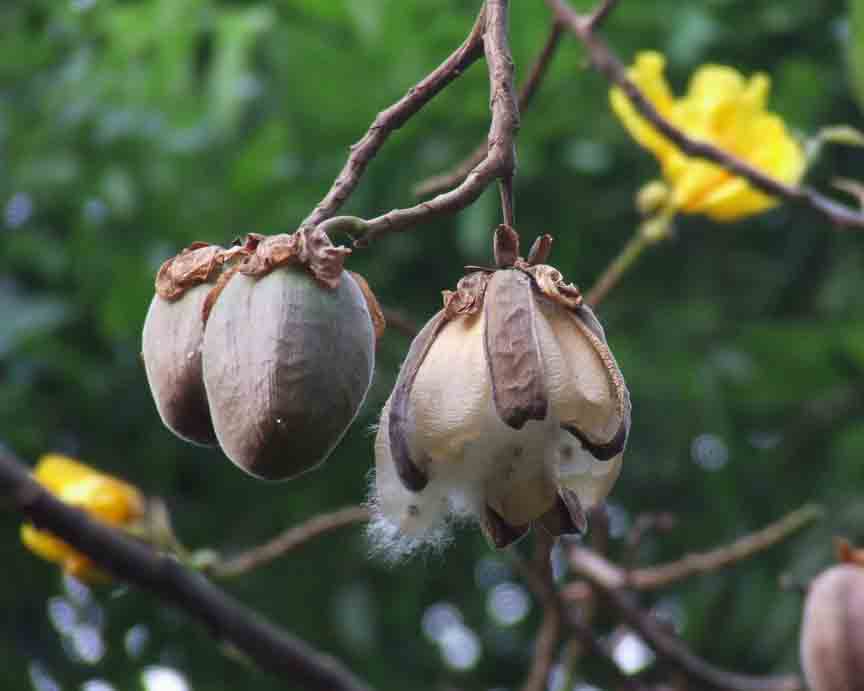 Ganer Gongal, Ganai, K- Phangra, Silk-Cotton Tree, Buttercup Tree, Kanikaara, Kinihiriyaa, Buttercup tree, Yellow slik cotton tree, Golden silk cotton tree • Hindi: Galgal • Marathi: Ganeri • Tamil: Kattupparutti • Konkani: Kondagogu • Bengali: Sonali simul • Kannada: Arasina buruga • Malayalam: Cempanni • Telugu: Konda gogu